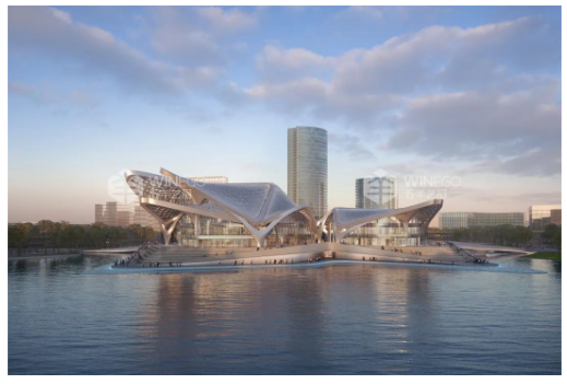 珠海金灣航空城市民藝術(shù)中心由國際著名的ZaHa Hadid(扎哈·哈迪德)建筑事務(wù)所設(shè)計,靈感源自中國南方起飛的候鳥。遠看像展翅的飛鳥,飛翔在海闊天空中,追逐時間的痕跡;俯瞰又像飽滿的風(fēng)帆,寓意金灣城市新中心建設(shè)即將蓄勢騰飛、揚帆遠航。