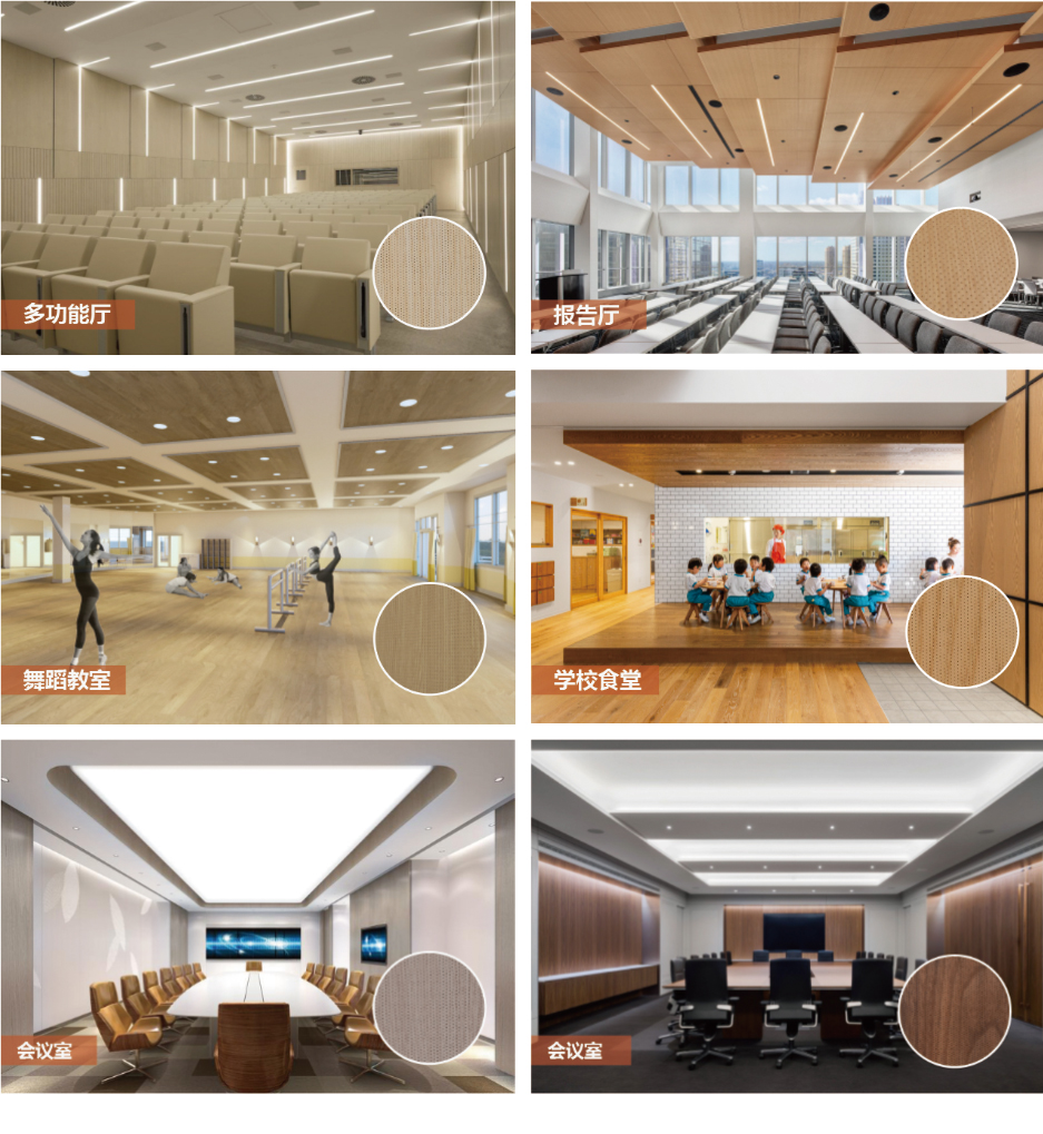 多功能廳、會議室、報告廳、歌劇院、音樂廳、體育館、家庭影院或者家居生活中對聲學 和美學要求較高的場所。