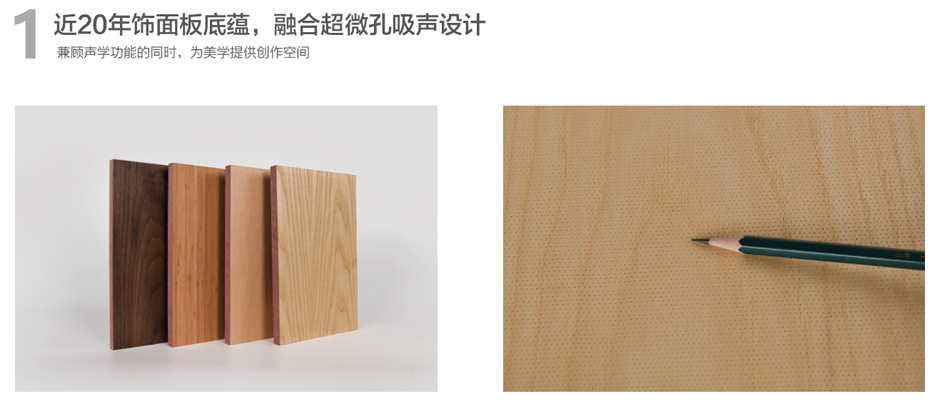 超微孔吸音板采用優(yōu)質的板材,具有環(huán)保、防火等性能,飾面及基材選擇性廣,能很好的滿足客戶多樣化的聲學及裝飾需求。