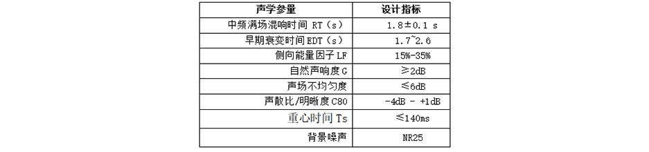表1 聲學設計指標