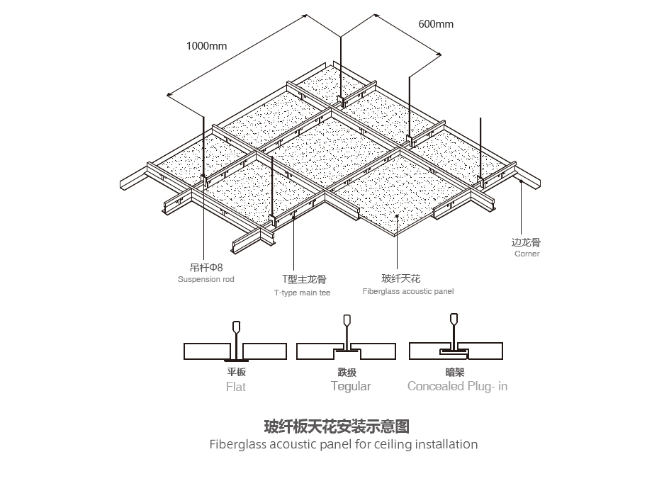 玻纖吸聲板采用優質的玻纖聲學棉板。正面使用白色或者裝飾性玻纖氈,四周白色涂層或貼氈,背面貼附加固玻纖氈。該產品結構穩定、不燃、無甲醛、吸聲系數好,并且良好的裝飾效果。