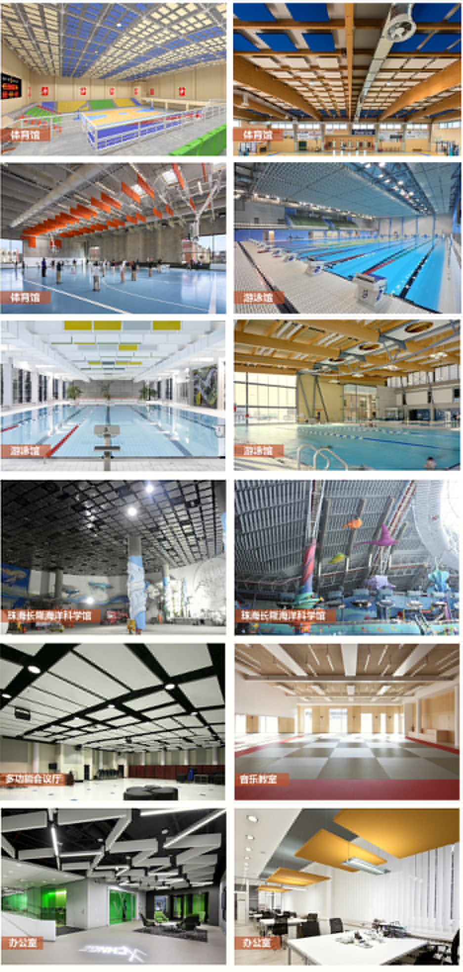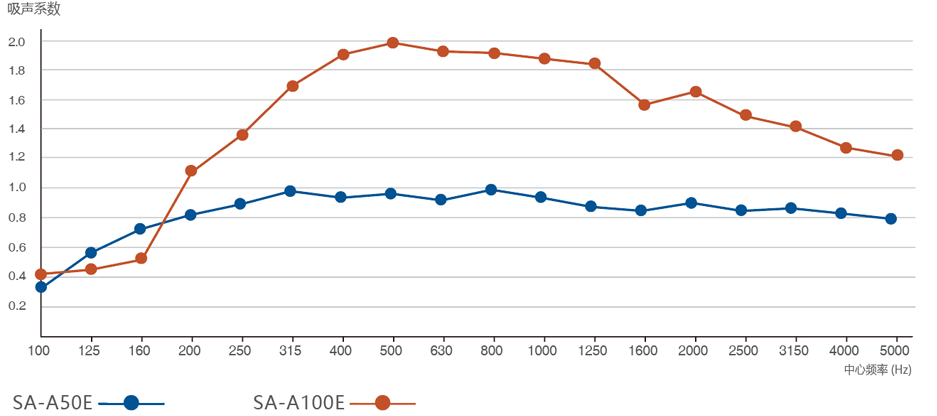 體育場館、演藝廳、多功能會議廳等建筑,為了達到建聲設計要求,需要使用空間吸聲體。空間吸聲體是一種懸掛在頂部具有強吸聲效率的聲學材料,水平或者垂直懸吊,全頻雙面吸聲,中高頻吸聲效果尤佳。 SA-A50E內置50mm白色環保聲學棉板,零甲醛、無粉塵,健康安全對人體友好,更佳的環保效果;因白棉具有強憎水性,使其抵制水汽的能力更強,擁有更長的使用壽命。