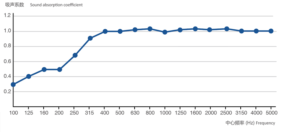 標準聲學棉FSG-S采用天然礦石為主要原料,配合一些化工原料融成玻璃。在融化狀態下利用離心噴吹工藝,吹成絮狀細纖維,纖維和纖維之間交叉,相互纏繞,呈現出許多細小的間隙。纖維蓬松交錯,存在大量微小孔隙,是典型的多孔性吸聲材料。玻纖聲學棉可以做成墻板、天花板、空間吸聲體等,可以大量吸收房間內的聲能,降低混響時間、減少室內噪聲。當玻璃棉背后有空氣層時,與相同厚度無空氣層的玻璃棉板吸聲效果相似。尤其是中低頻吸聲性能比實貼在硬板面上會有很大提高,吸聲系數會隨著空氣層厚度增加而增加。