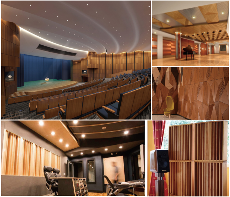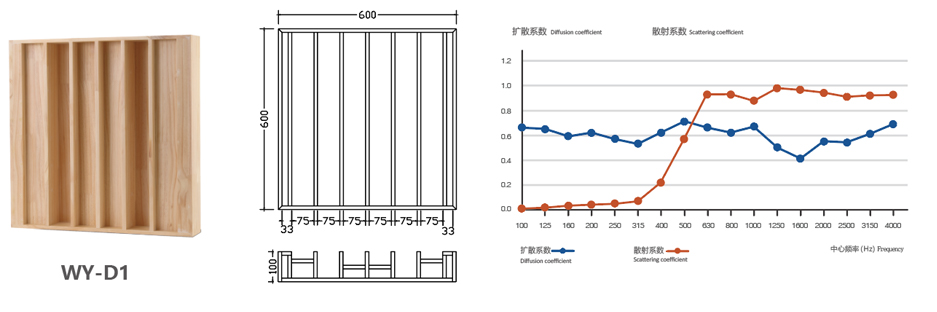 木質擴散體是一種不規則的平面設計,目的是在反射中產生擴散,它產生的聲音非常豐富而圓潤,混響聲似乎是從許多方向從側向、從頭頂以及從前方到達聽眾的,可顯著地改善廳堂的音質條件。